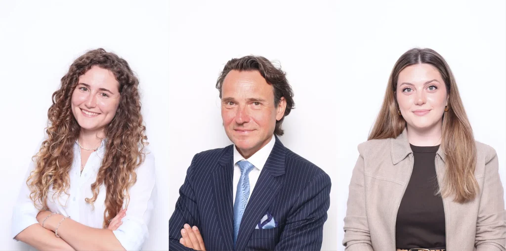 Group photo of eight professionals posing creatively on a red background with fun props, promoting the 'Are you ready to run with it?' theme.